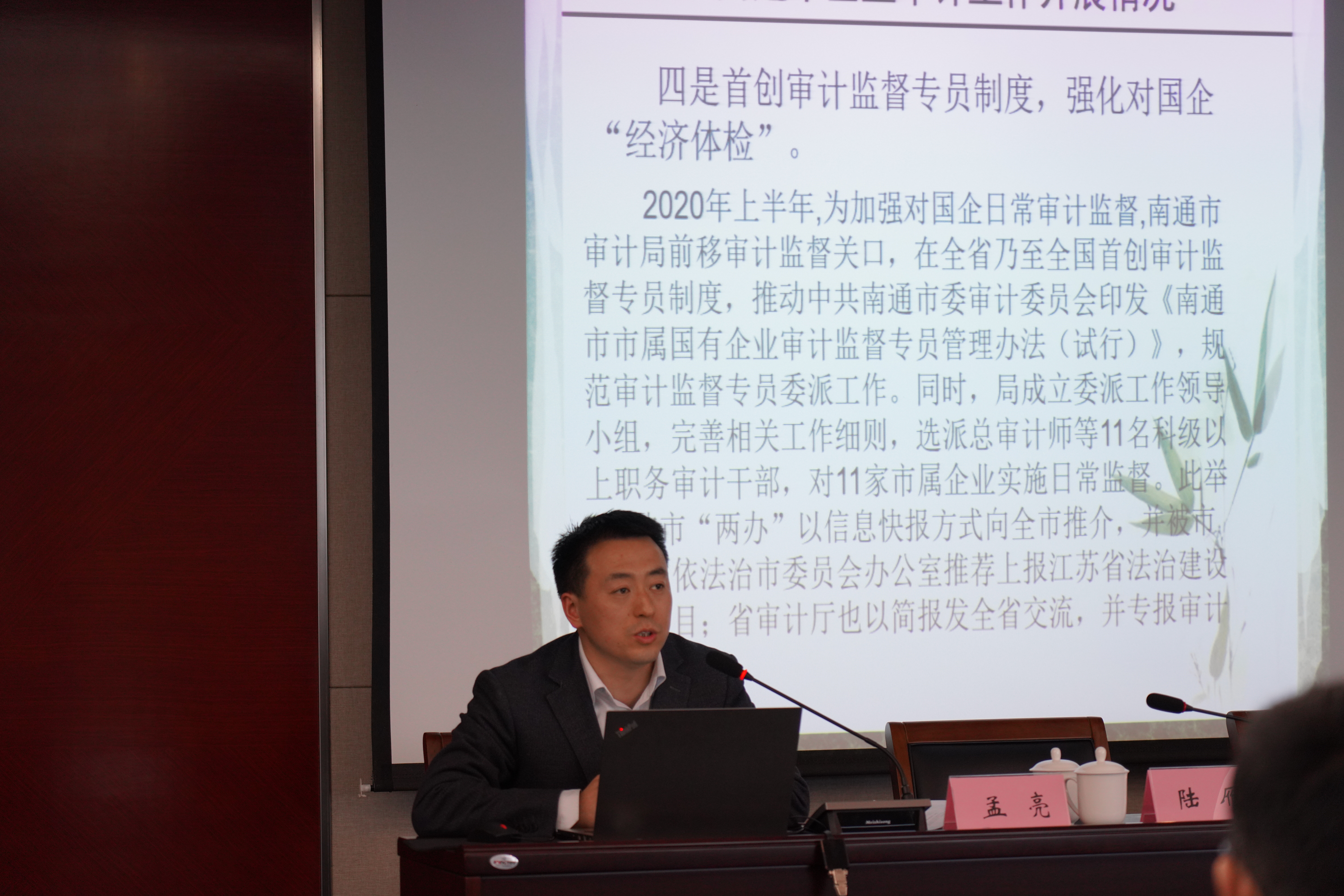 企業(yè)審計(jì)處處長(zhǎng)孟亮,為大家作《國(guó)有企業(yè)審計(jì)簡(jiǎn)介》講座,他結(jié)合實(shí)際案例著重介紹了南通企業(yè)審計(jì)開展情況、國(guó)有企業(yè)審計(jì)的發(fā)展和總體要求、國(guó)企領(lǐng)導(dǎo)經(jīng)濟(jì)責(zé)任審計(jì)的方法和重點(diǎn)、做好國(guó)企領(lǐng)導(dǎo)經(jīng)濟(jì)責(zé)任審計(jì)的關(guān)鍵點(diǎn)等方面。